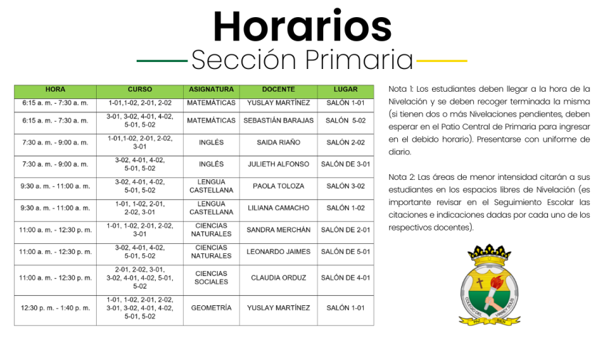 ¡Ánimo! Estudiante, esta es tu oportunidad para recuperar las asignaturas; recuerda estudiar tus apuntes y resolver tus dudas. Nota: Desliza para visualizar los horarios.